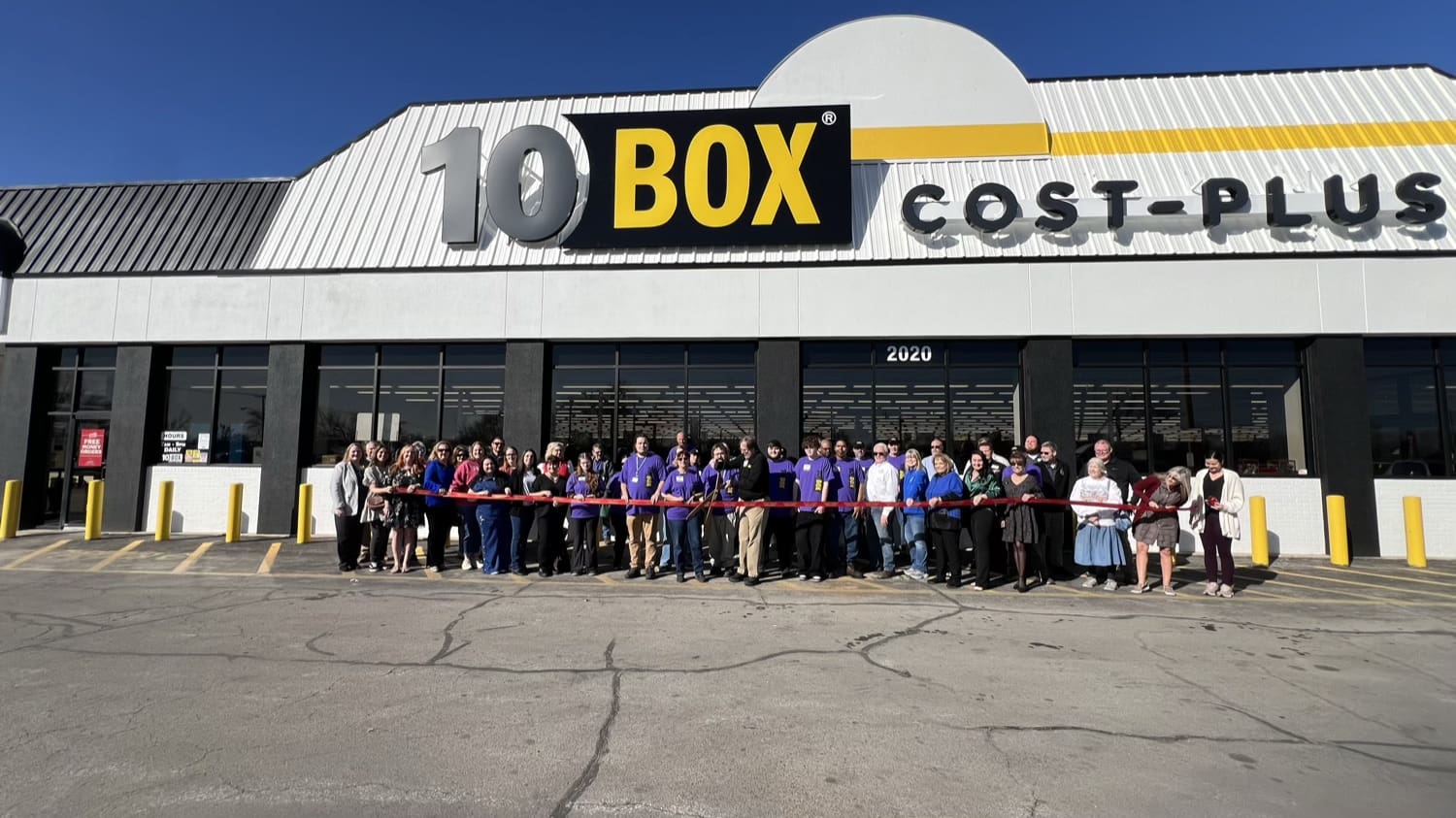 A large crowd of corporate and local employees gathered on the bright and sunny morning to cut the ribbon on the brand new 10Box Cost Plus grocery store at 2020 S. Main on Thursday.