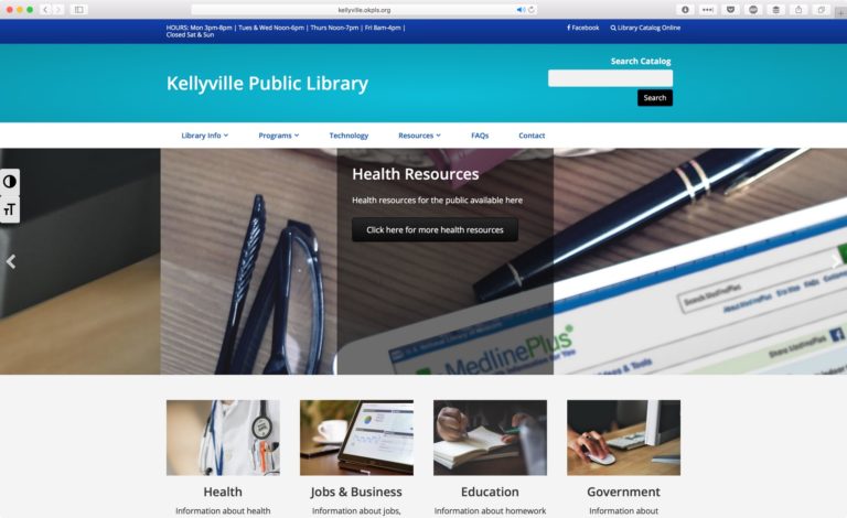The library website will highlight reliable, online health information resources. Oklahoma Department of Library staff will teach a class at the library for anyone in the community on easy-to-use health information that can be found on the library’s website.