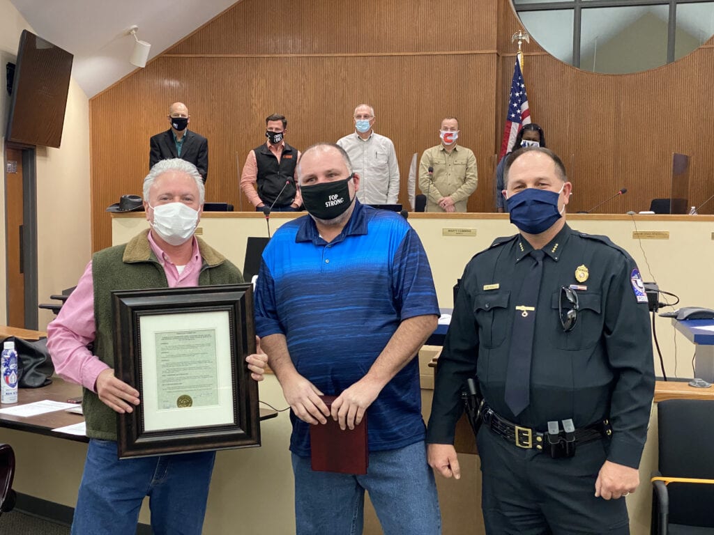 Sapulpa Police Captain Steve Thompson was recognized and commended for his 30 years of dedicated service to the City. Thompson joined the department in 1990 and won the Medal of Valor in 2004.