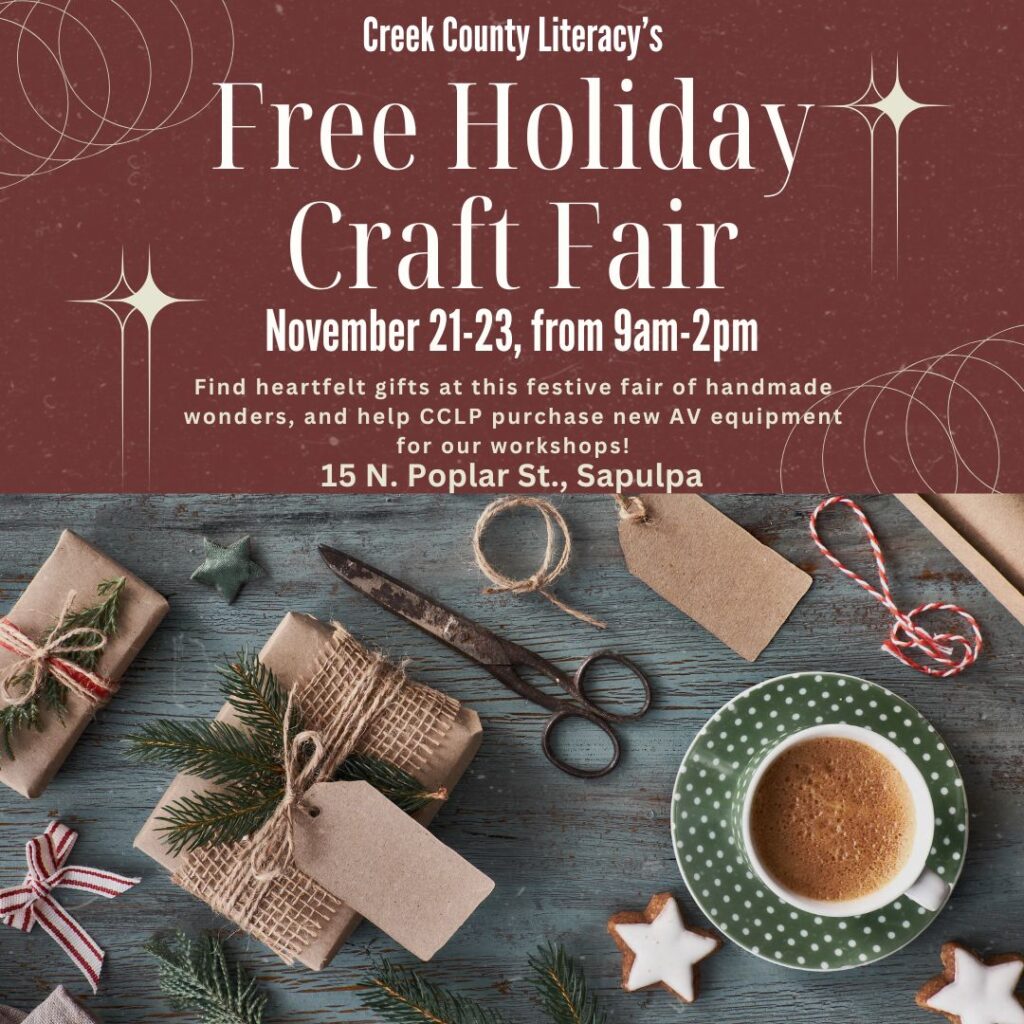 Creek County Literacy Program is hosting a Holiday Craft Fair to help fund new AV equipment for their building. This event is FREE and open to the public.