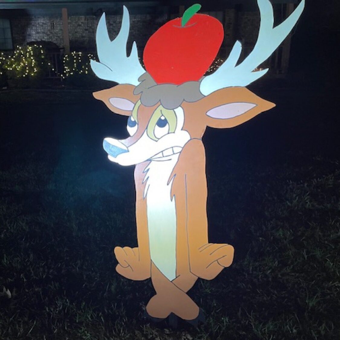 In the 1980s, Frazier wanted to do some custom Christmas displays in her yard in Coppell, Texas. She owned a store in Dallas, with an art store down the street. When she inquired about a cartoonist, they gave her the number for Dick Ruhl, and she paid him to draw 14 different reindeer that she could cut out and place in her yard for display.