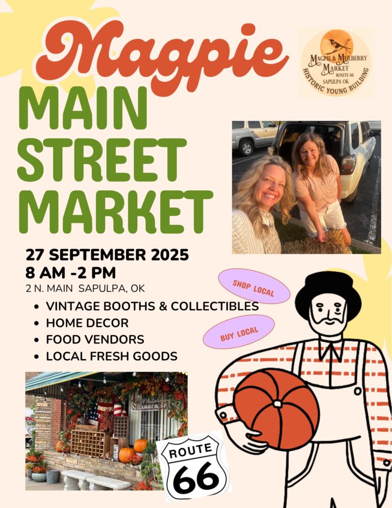 The Magpie Main Street Market, brought to you by Magpie and Mulberry, will feature multiple booths, home decor, food vendors and more! The fun kicks off at 8am Saturday morning and will last for hours! Come check it out at Magpie and Mullberry, at 2 N. Main Street (the northwest corner of Main St and…
