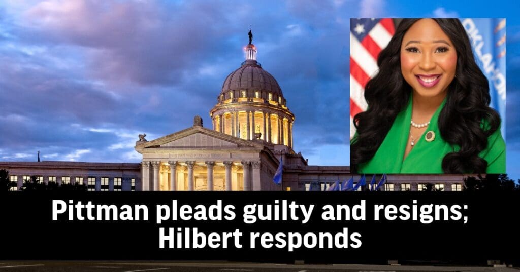 “Today, I received a copy of Representative Pittman’s resignation from the Oklahoma House of Representatives,” Hilbert said. “Her resignation follows serious and proven violations of ethics laws. This conduct is unacceptable and falls well below the standard expected of anyone serving in the Oklahoma House of Representatives.”