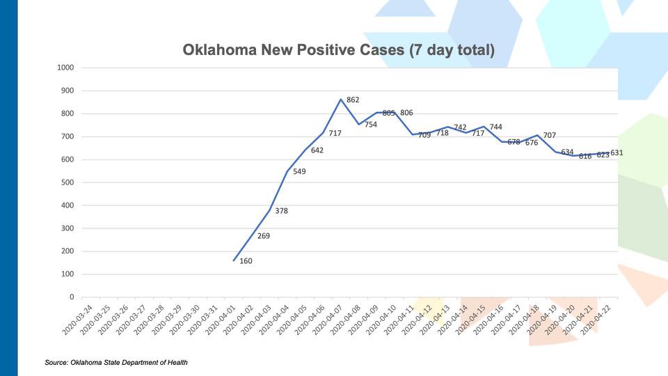 State Representative Kyle Hilbert shared Thursday the graphics he’d been given by the state backing the Governor’s decision to implement the reopening of the economy. According to Hilbert, “The governor said residents in communities with stricter local restrictions should adhere to local policies.” Hilbert also pointed out that Oklahoma City, Tulsa and many midsize communities continue to have stricter restrictions in place through April.