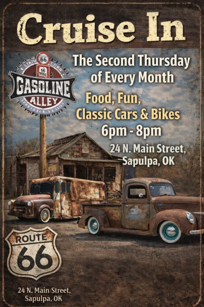 Cruise-In at Gasoline Alley Classics: Thursday at 6 PM — Sapulpa, OK — Event link