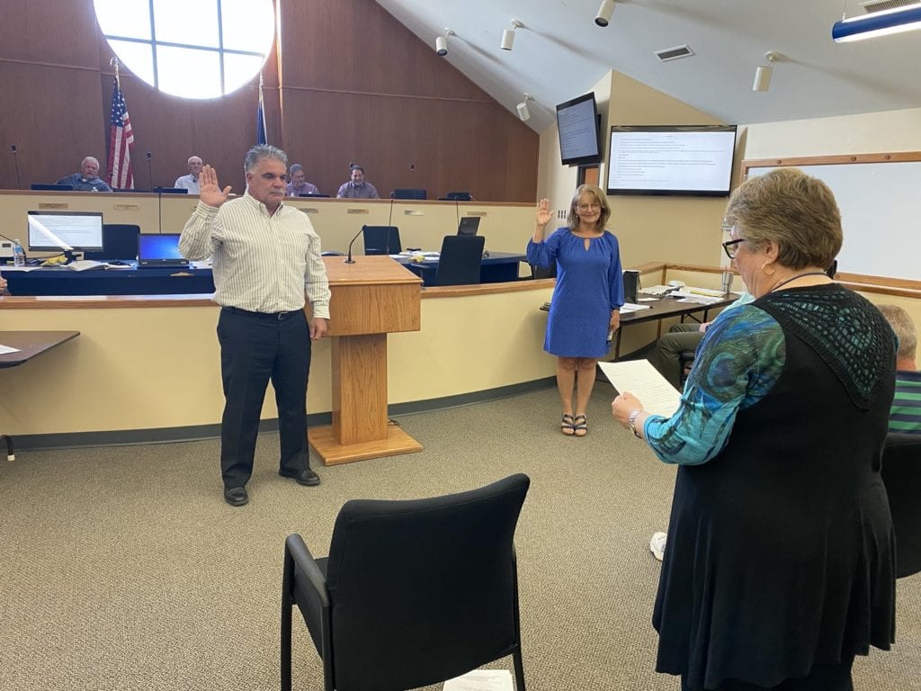 Brian Stephens and Vickie Beyer being sworn in.