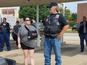 They were led in prayer by one of the bikers and then he reminded everyone about Matt Lewellyn, who is suffering from throat cancer. The run is a fundraiser for his medical bills which mount daily. He is the founder of the “Bikers Back the Blue” and in 2016, organized rides and went on many himself before becoming ill. The group all wish him good health and to participate in the rides soon.