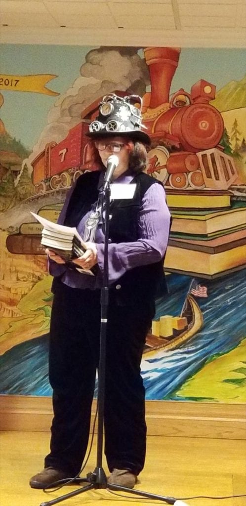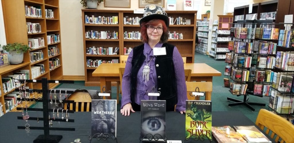 There was a book signing by local author, D.E. Chandler, who writes science fiction/horror/ fantasy novels/ Chandler currently has 3 books in publication and is working on her Masters of Fine Arts from Oklahoma City University. Saturday’s events included CosPlay costume contest, Sheriff of Steampunk presentation, and Mad Science demonstrations.