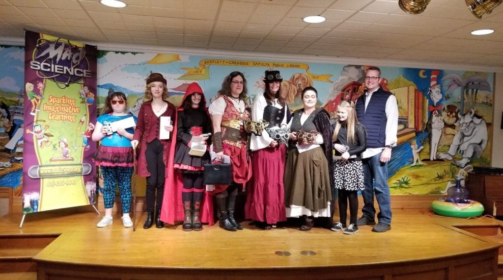 The Sapulpa Public Library held its 2nd annual S.T.E.A.M Con, which stands for Science, Technology, Engineering, Art, and Mathematics Convention, Friday, October 25th, and Saturday, October 26th. The Steampunk and Pop Culture event was sponsored by SeneGence International, Muscogee Creek Nation, and Friends of the Library.