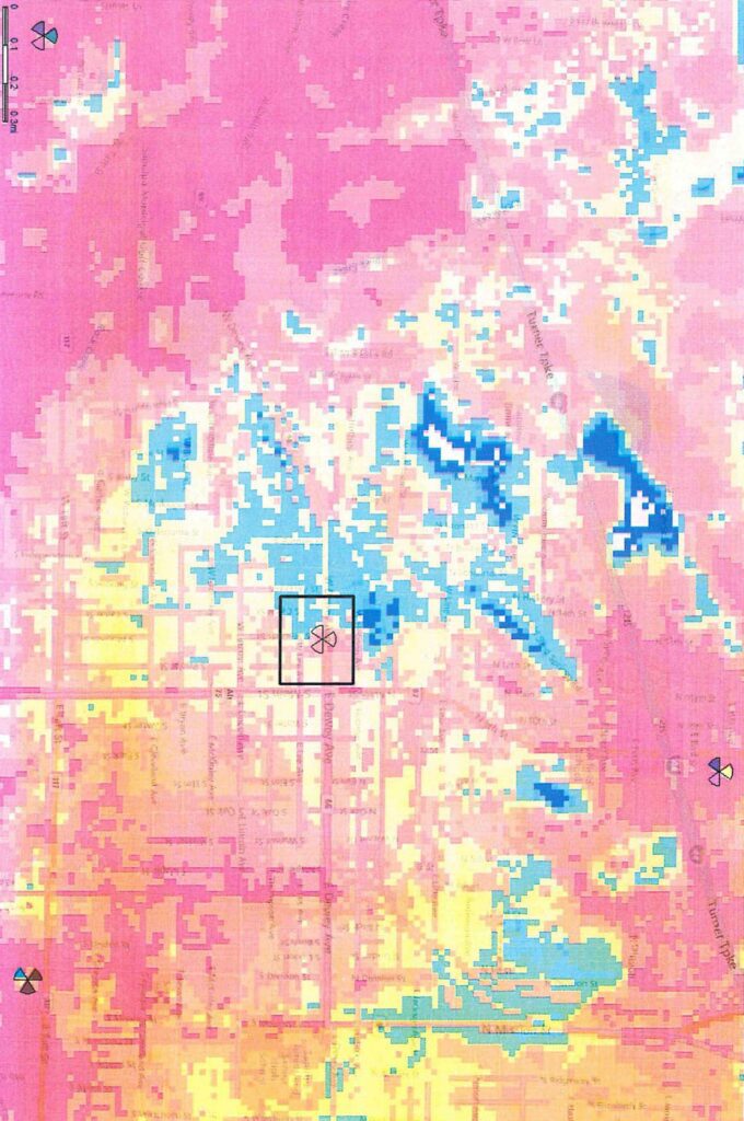 These “heatmap” style graphics display the cell coverage before and after the proposed tower.