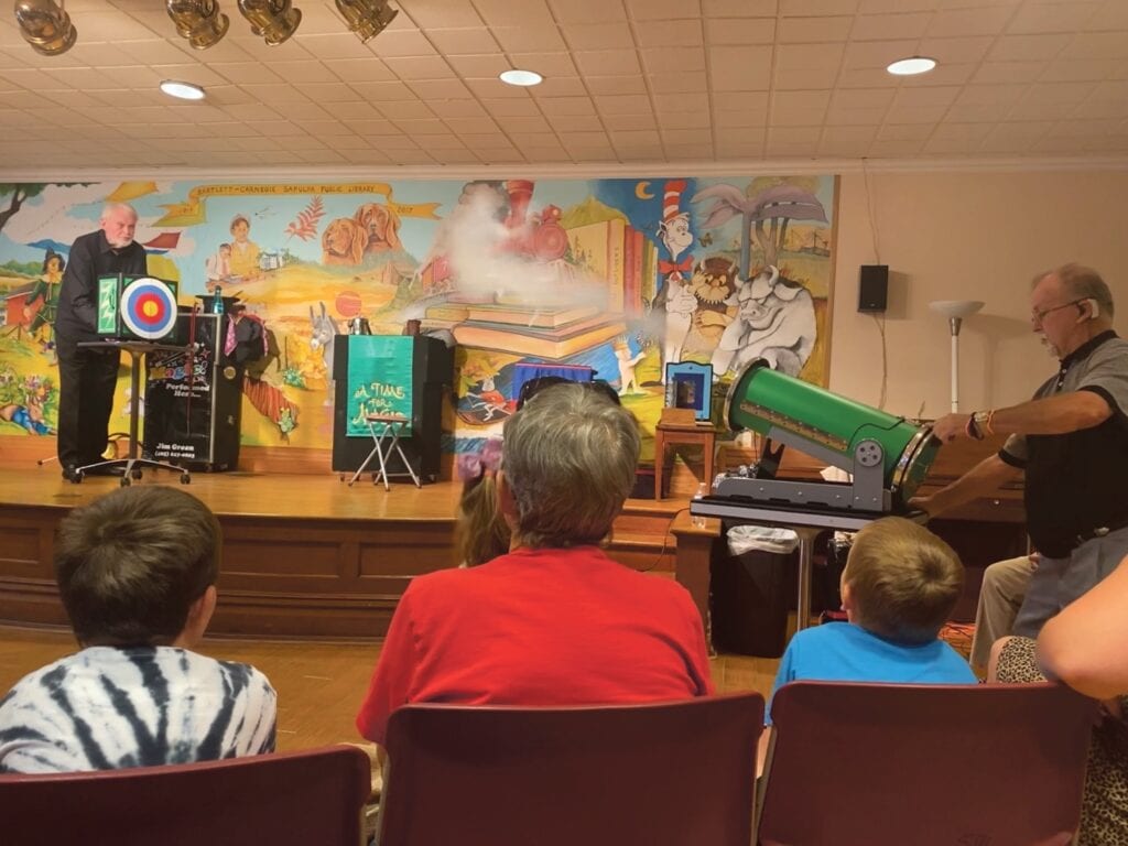 That was how the magic show in Frank Hall at the Sapulpa Public Library started, and the jokes and amazing illusions didn’t stop for the next half hour as kids and parents alike were treated to a free show on Thursday, June 17th.