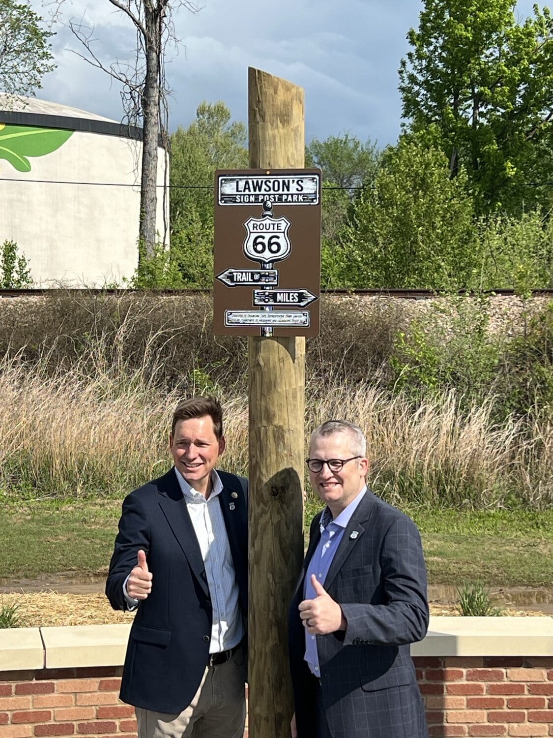 The ceremony also included recognition of local State Representative Mark Lawson, whose work with the Route 66 Centennial Commission made the funding for all the new attractions along the Mother Road in Oklahoma possible. Mark Lawson is a fifth-generation Sapulpan and was the first one to attach a sign to the new signpost park.