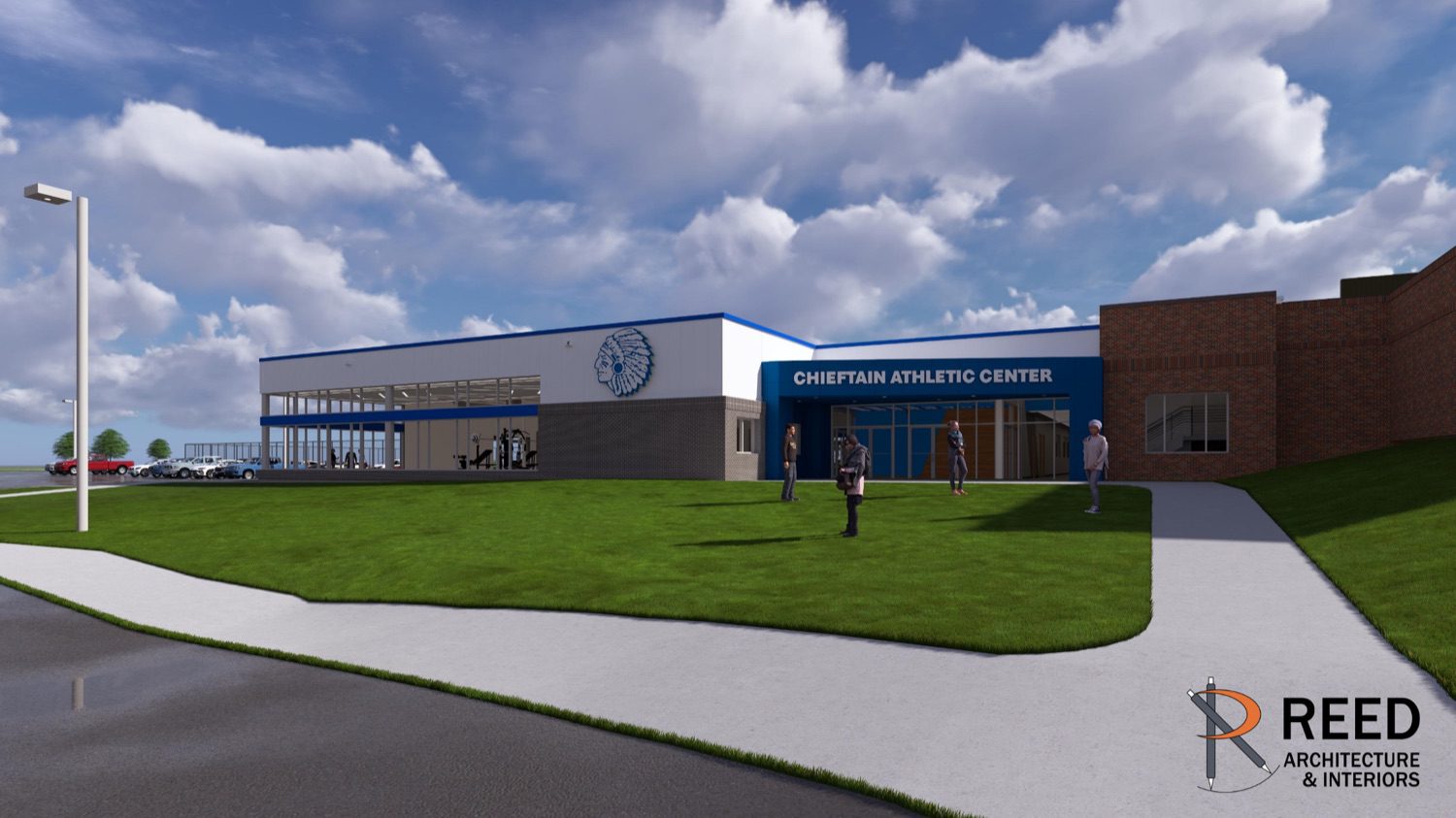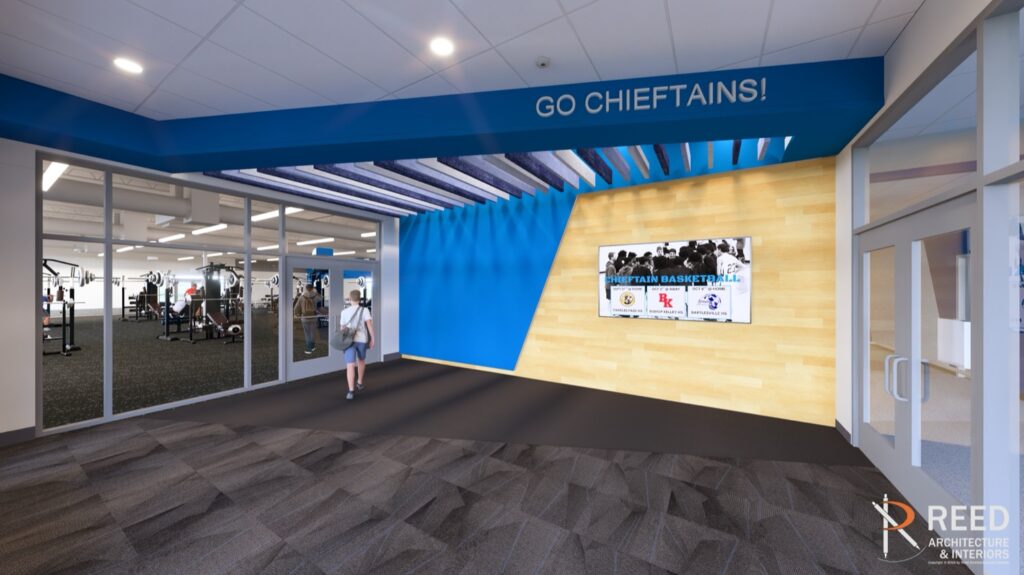 The Chieftain Athletics expansion includes auxiliary gyms for practices, competitions, and school events, as well as a state-of-the-art workout area and a concession stand.