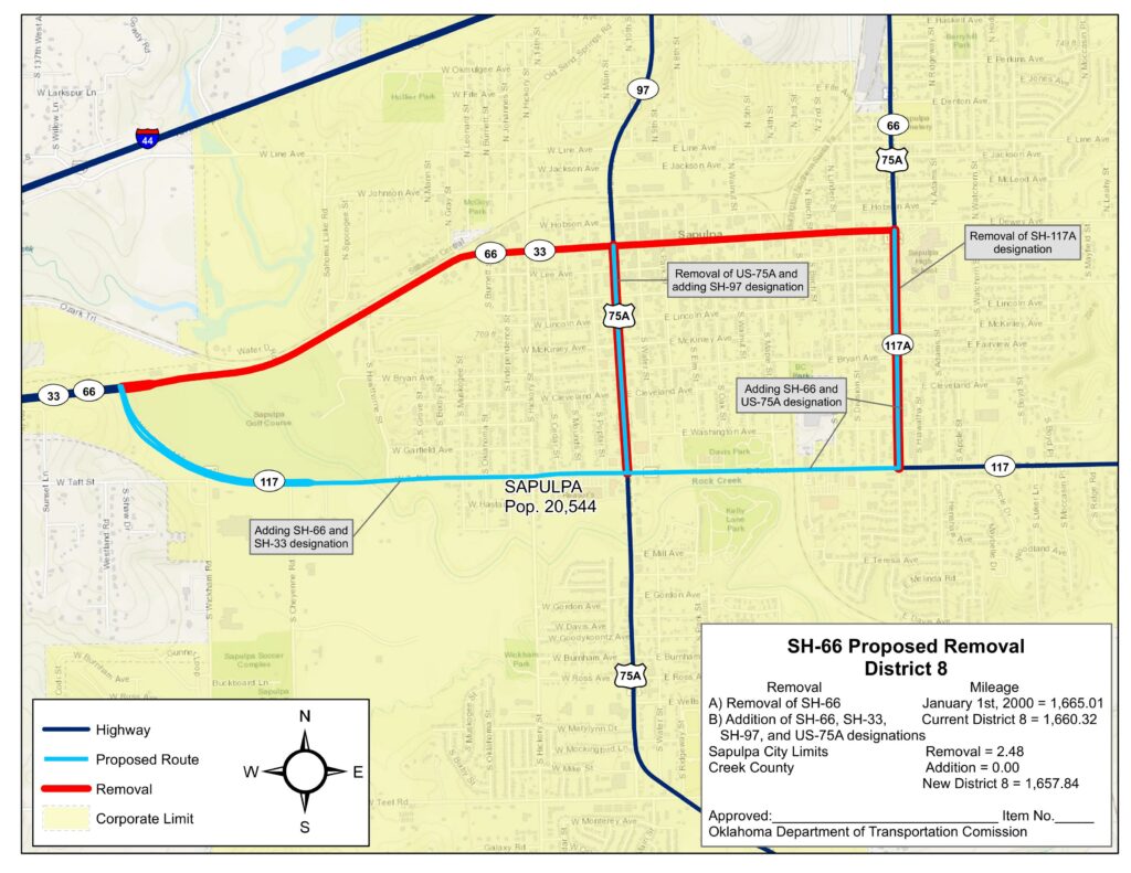 The Downtown Master Plan (DMP), adopted by City Council in June, suggested that the control and jurisdiction of the portion of State Highway 66 which runs through downtown Sapulpa on Dewey be ceded from the Oklahoma Department of Transportation (ODOT) and given to the City of Sapulpa. This is expected to greatly improve the character, function, and safety of the downtown transportation network.