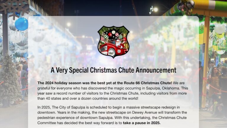 Sapulpa’s Route 66 Christmas Chute will “take a pause” for 2025