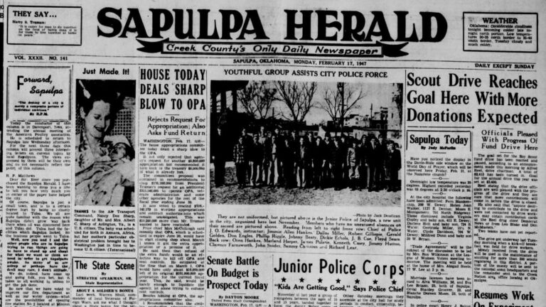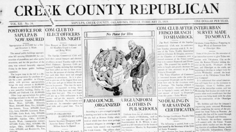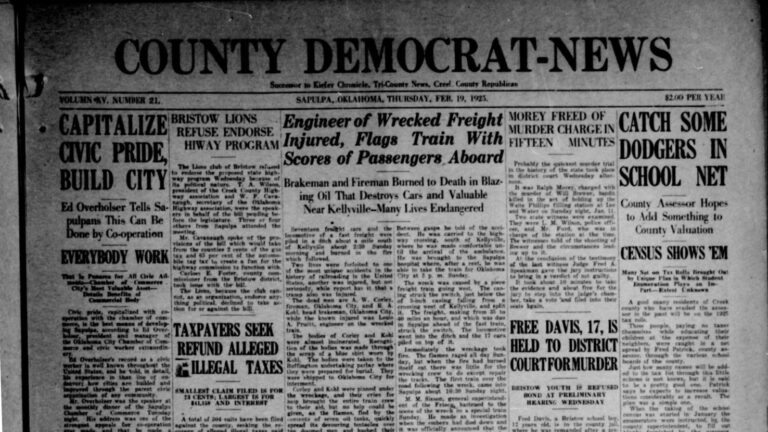 Today in 1919, the chairman of the Sapulpa Commercial Club expressed a desire to get a railroad extension to Shamrock. This and more headlines that made history on February 17th.