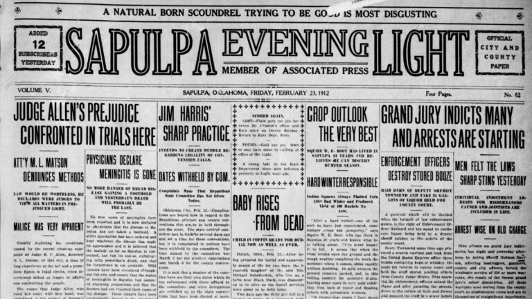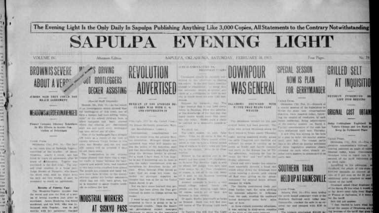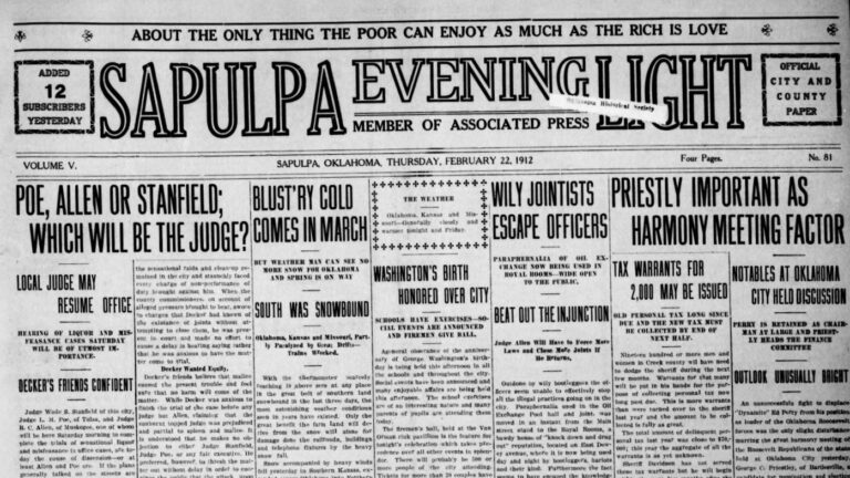 In 1912, the Sapulpa Evening Light proclaimed that all houses in the city now had a water meter! Read this and what else is making headlines in history on February 22nd.