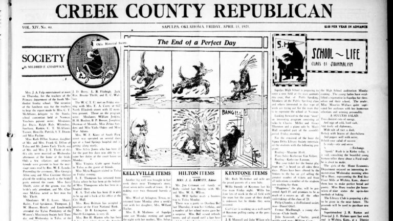 Today in history, the Creek County Republican announces the "newest oil town to dot the map," called Stanleyville. It was located on "the chat road between Sapulpa and Drumright."