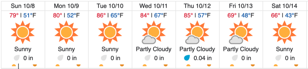 60s, 70s, and 80s will dominate the forecast for the next week, according to Weather Underground.